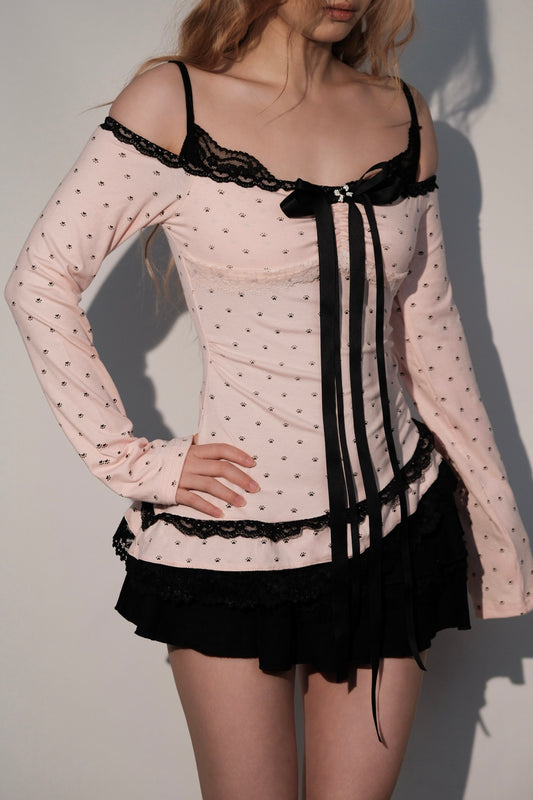 Polka dot top & lace puff skirt outfit