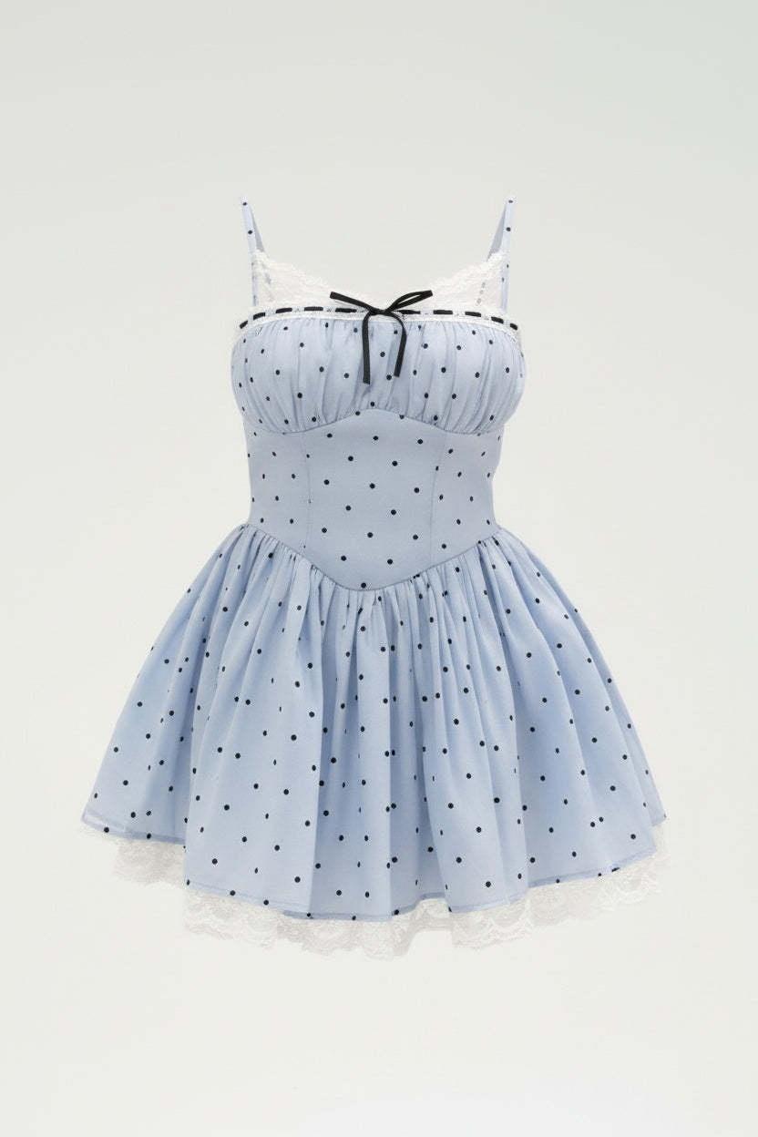 Baby blue polka dot lace strap dress