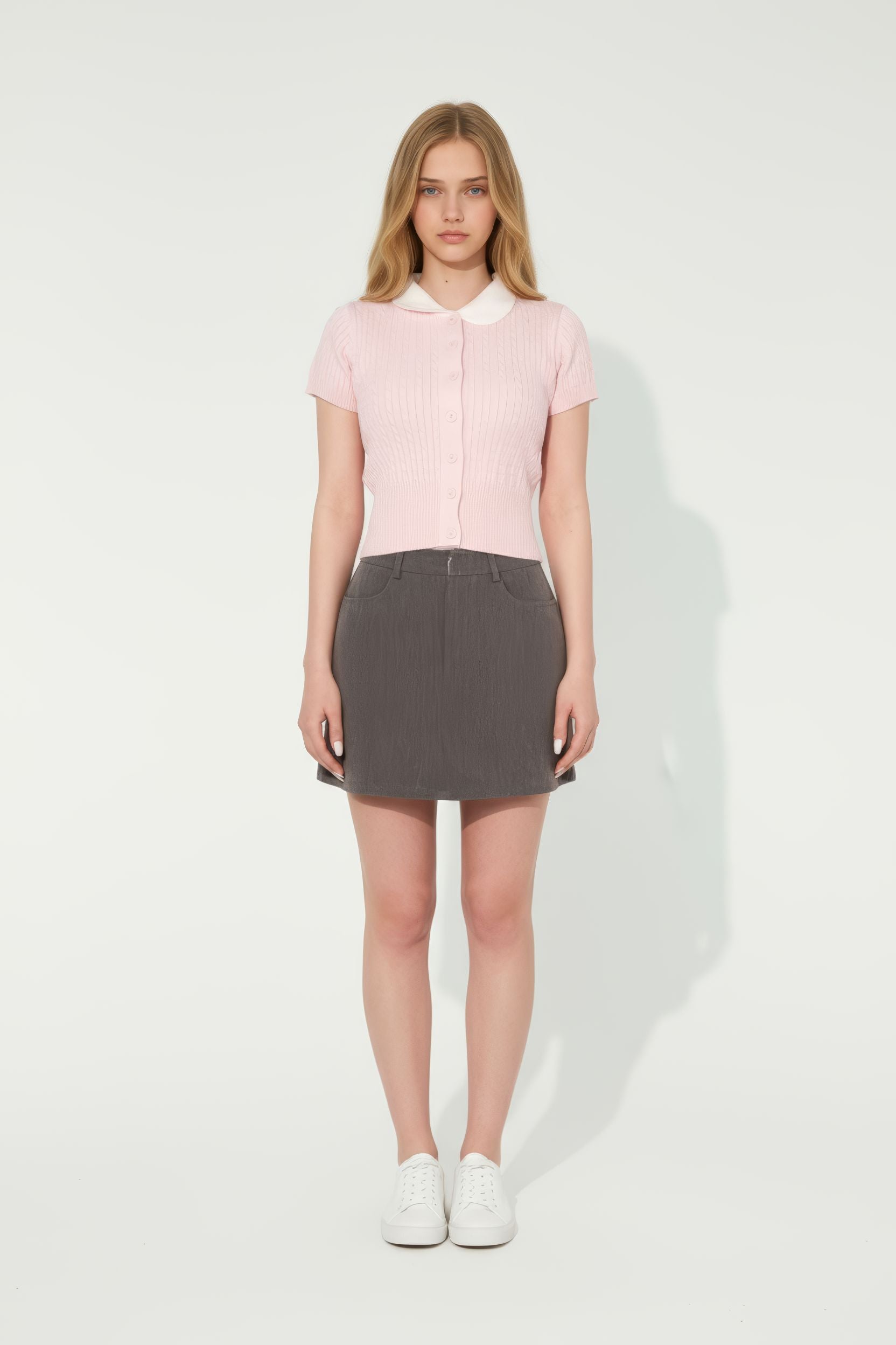 Design Details: Peter Pan collar; short sleeves; two-piece set (top + skirt); solid color pattern; commuter style Waistband Features: garment set with separate skirt component