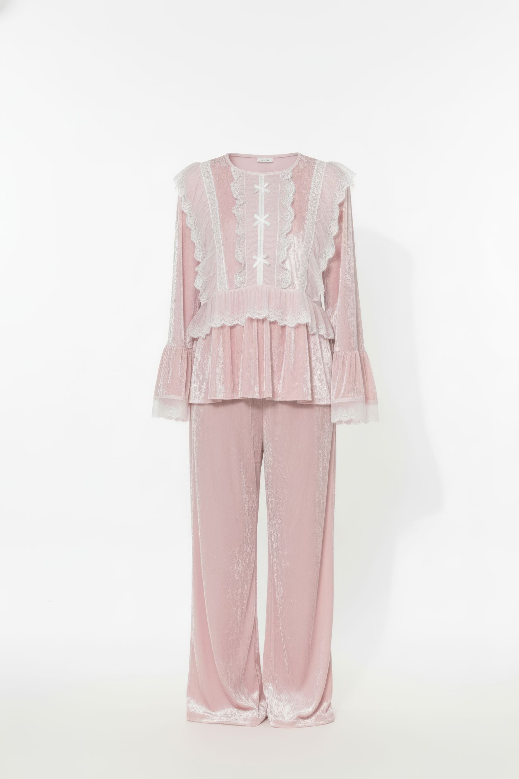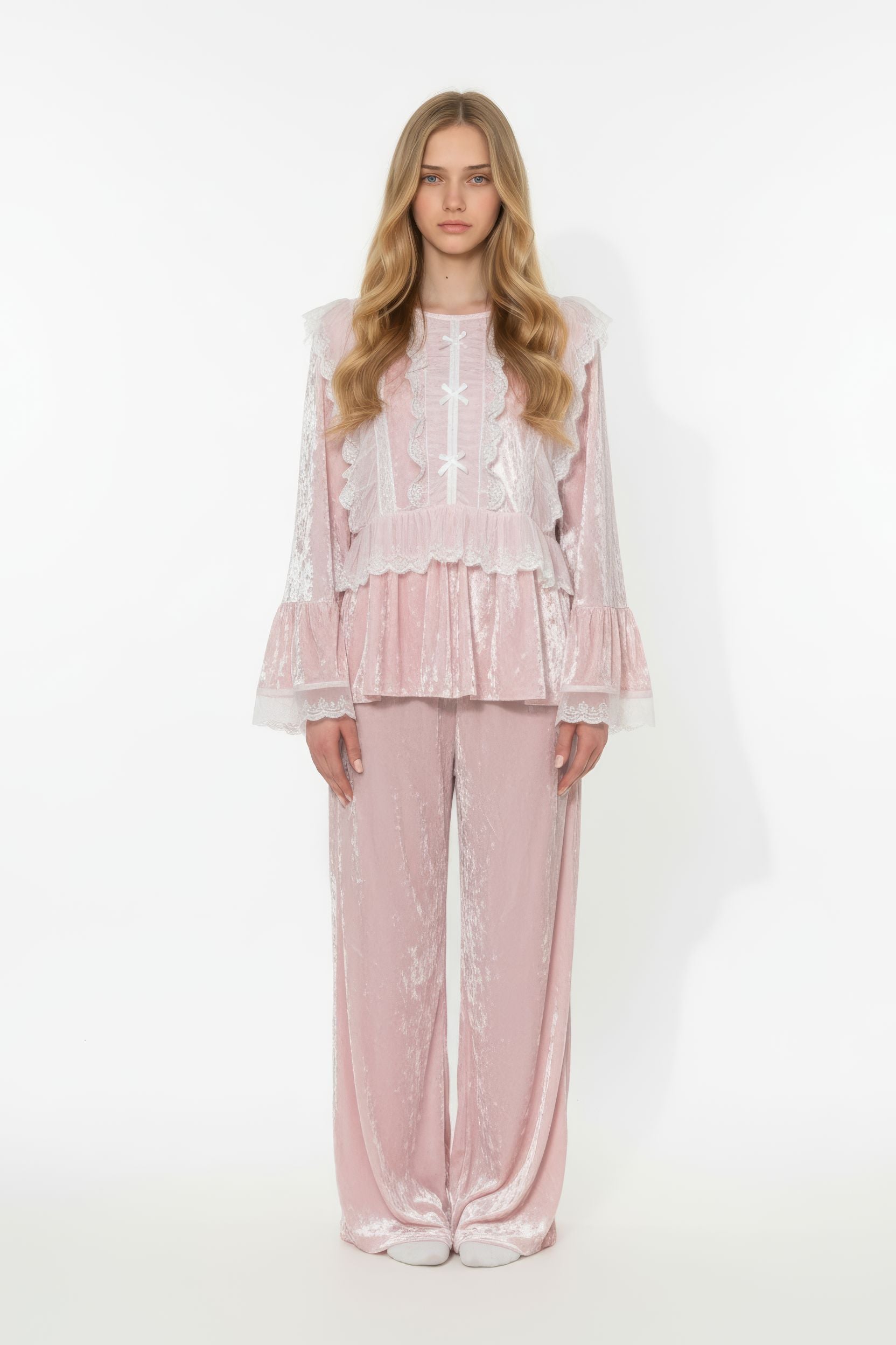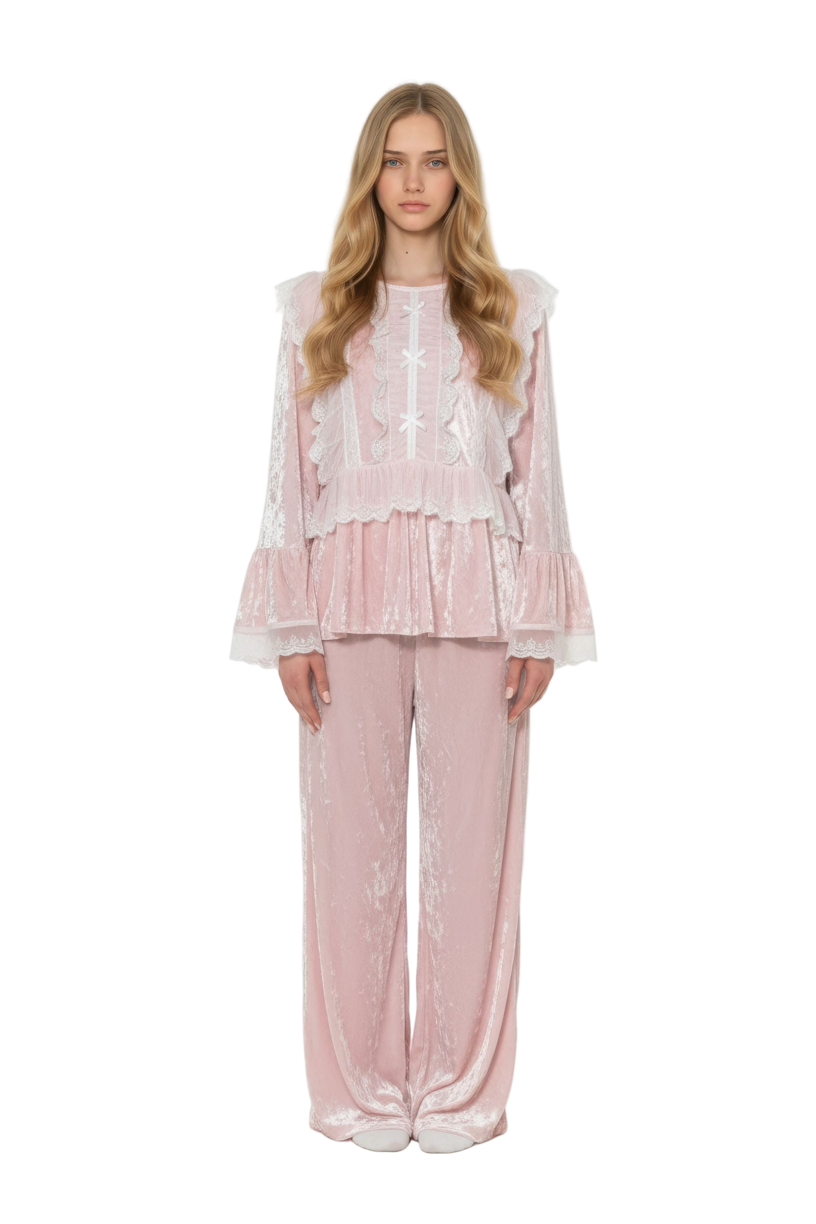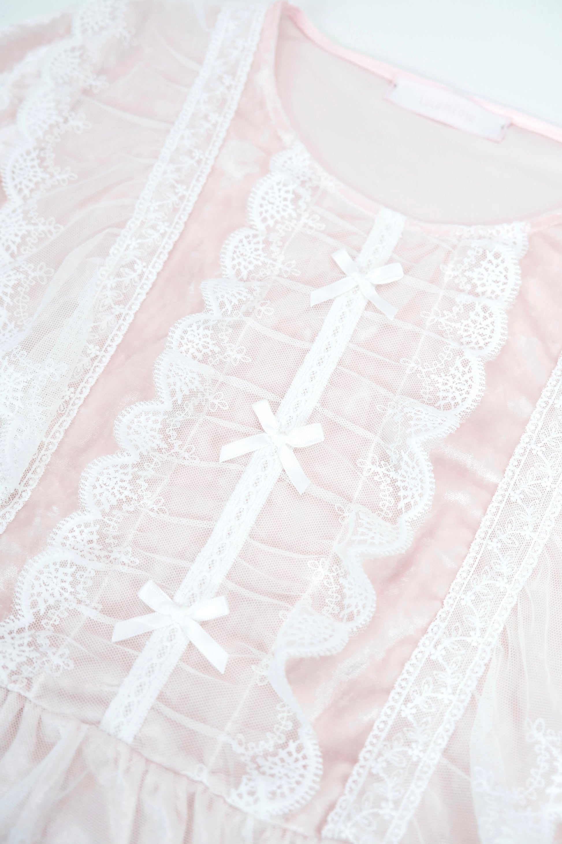 Design Details: Round neckline; pullover closure; long sleeves; lace detailing; sweet cute style